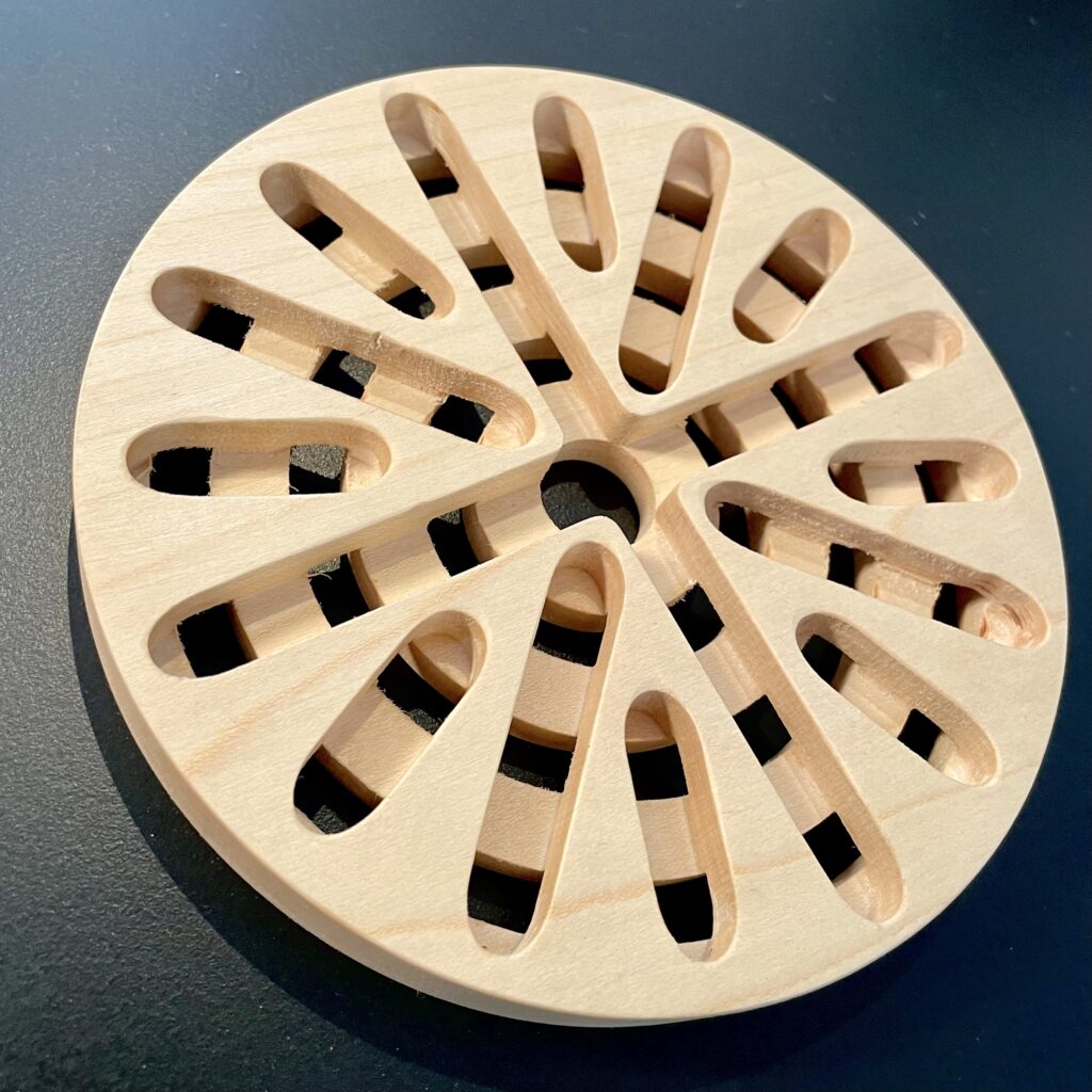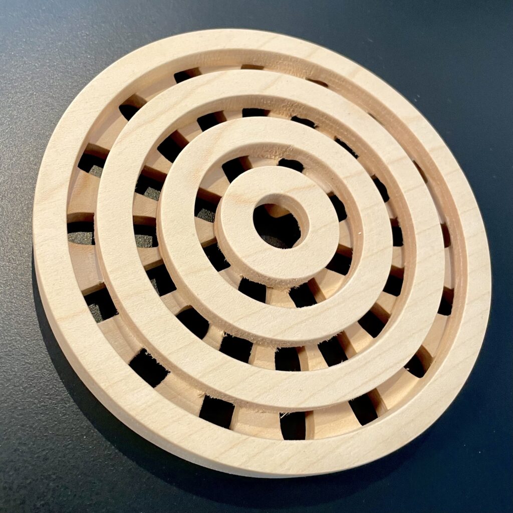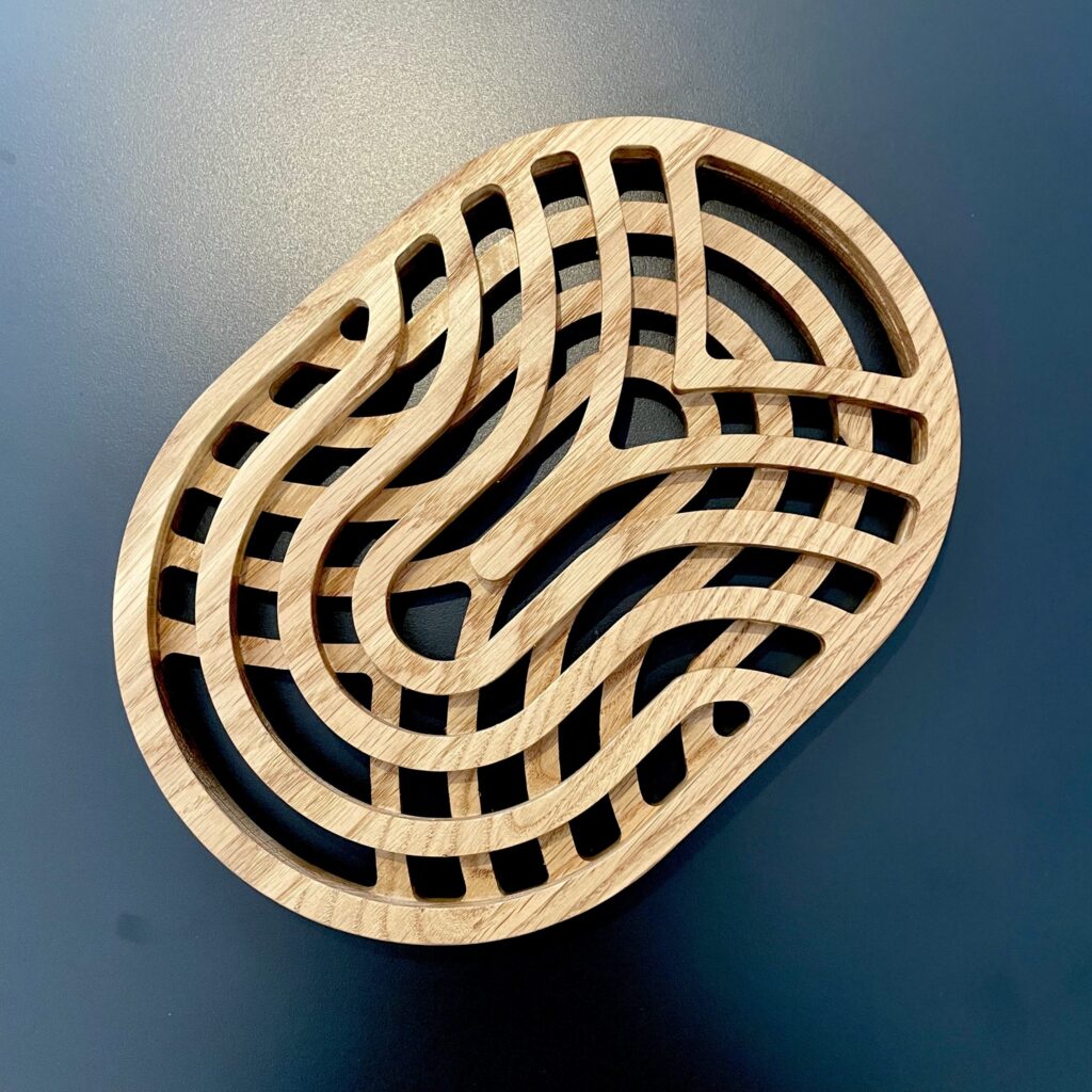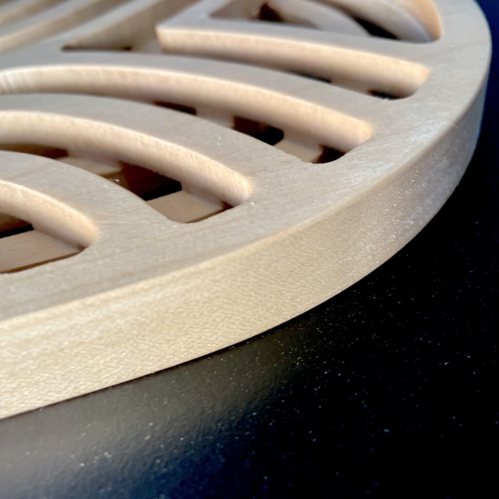 Der CoolCoaster verbindet Handwerk, Design und Funktion in einem Stück massiver Eiche. Durch ein raffiniertes Fräsverfahren entstehen auf beiden Seiten ineinander verschachtelte Muster, die nicht nur optisch faszinieren, sondern auch für eine optimale Wärmeabfuhr sorgen.